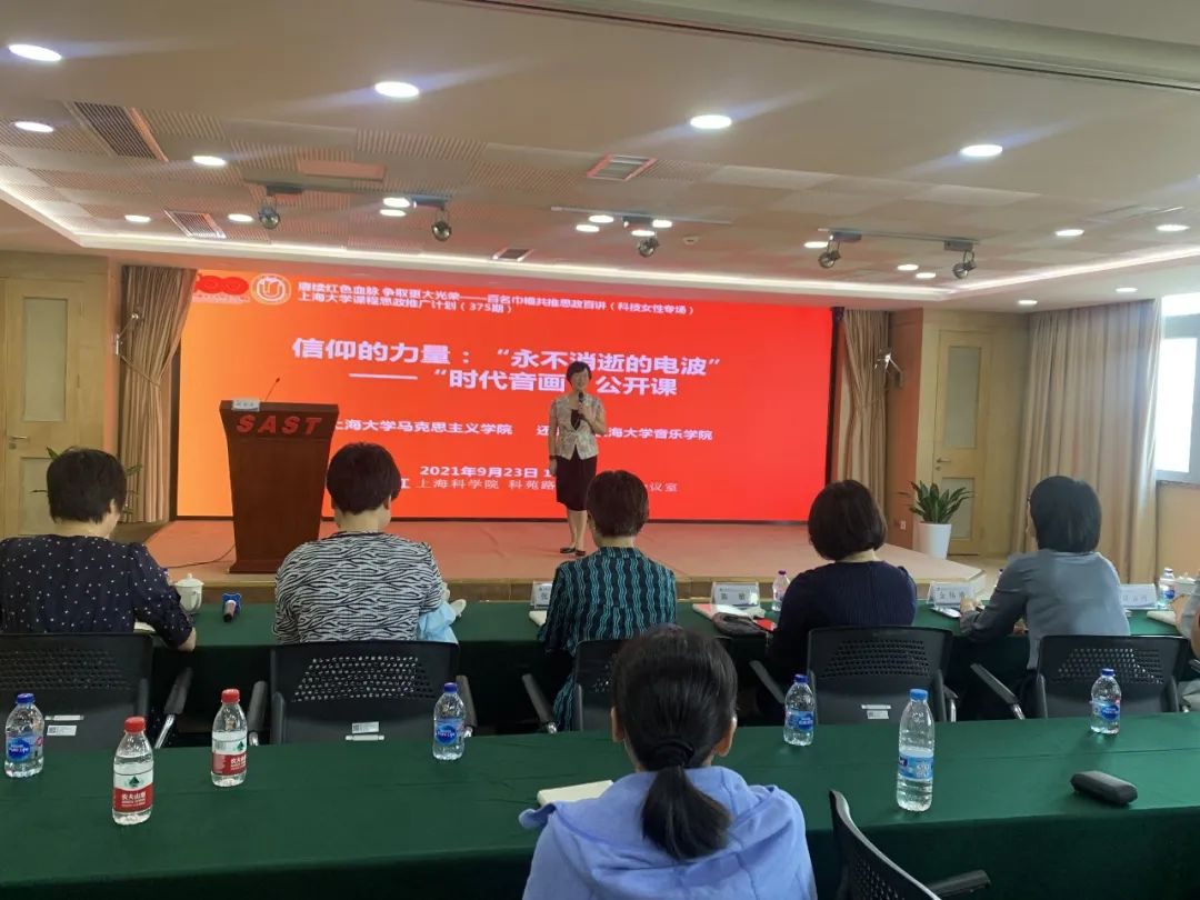 9月23日下午,上海市妇联“赓续红色血脉 争取更大光荣——百名巾帼共推思政百讲活动”走进位于张江科学城的上科院,为上科院的女性科技工作者送上了一场主题为“信仰的力量:永不消逝的电波”的时代音画党史宣讲。上海市妇联发联部副部长金伟清、上海市科技妇工委主任陈敏、浦东新区妇联副主席国云丹、上海市三八红旗手联谊会副会长张帆、浦东新区妇联办公副主任陆静怡、上海市科技妇工委陆沉出席了宣讲会。