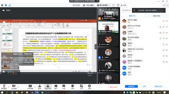 ‘安全生产月’专题培训”通过线上形式成功举办。行业资深专家陈建定老师为参会人员作了“《安全生产法》解析”的专题辅导。上科院行政保障处相关人员,各直属单位主要领导、分管领导、负责安全生产管理工作的部门负责人和管理人员,软件中心全体员工约360人参加了培训。