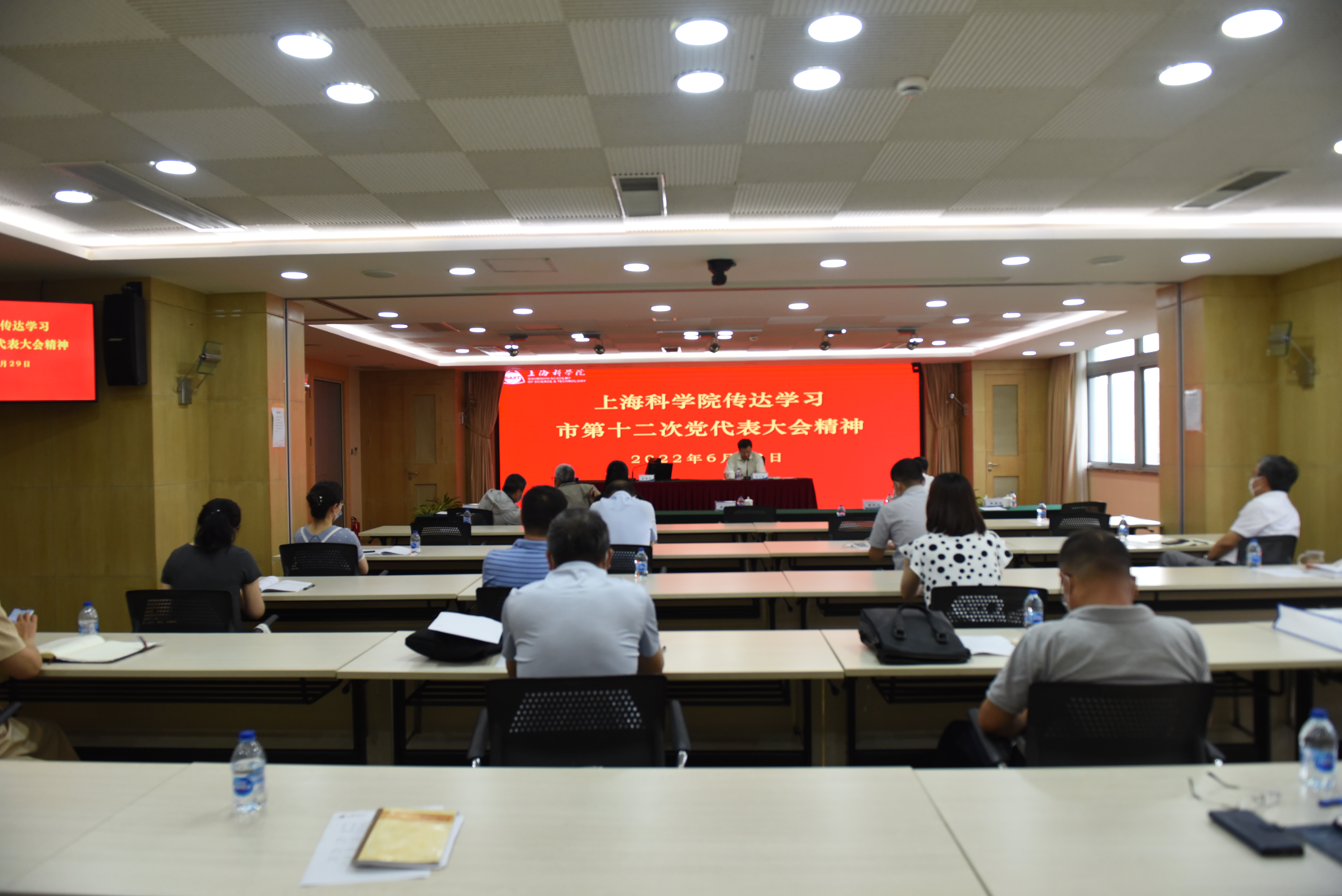 6月29日,上科院召开党员干部会议,传达学习市第十二次党代表大会精神。党委书记、院长秦文波主持会议并作传达。院领导班子成员、各部门负责同志以及各直属单位党政负责同志参加会议。