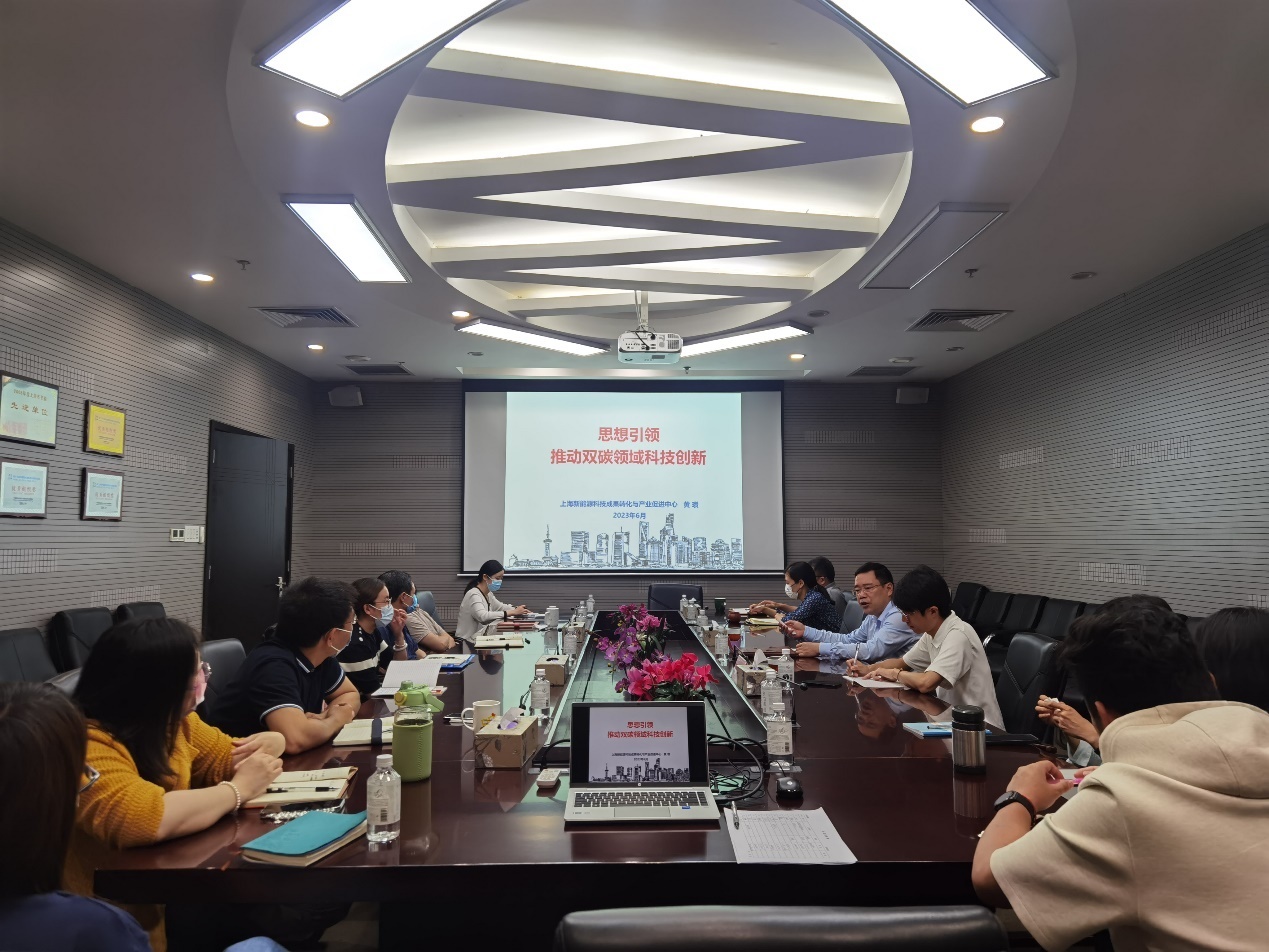 黄瓒带领全体员工深入学习党的二十大精神,特别是党的二十大报告中对于“积极稳妥推进碳达峰碳中和”“推动经济社会发展绿色化、低碳化是实现高质量发展的关键环节”等重要论述,阐述了碳达峰碳中和提出的背景和意义、世界主要国家碳中和的政策和行动、我国实现碳中和面临的挑战和可能的路径以及上海科技如何发挥思想引领的作用,支撑引领碳达峰碳中和工作。