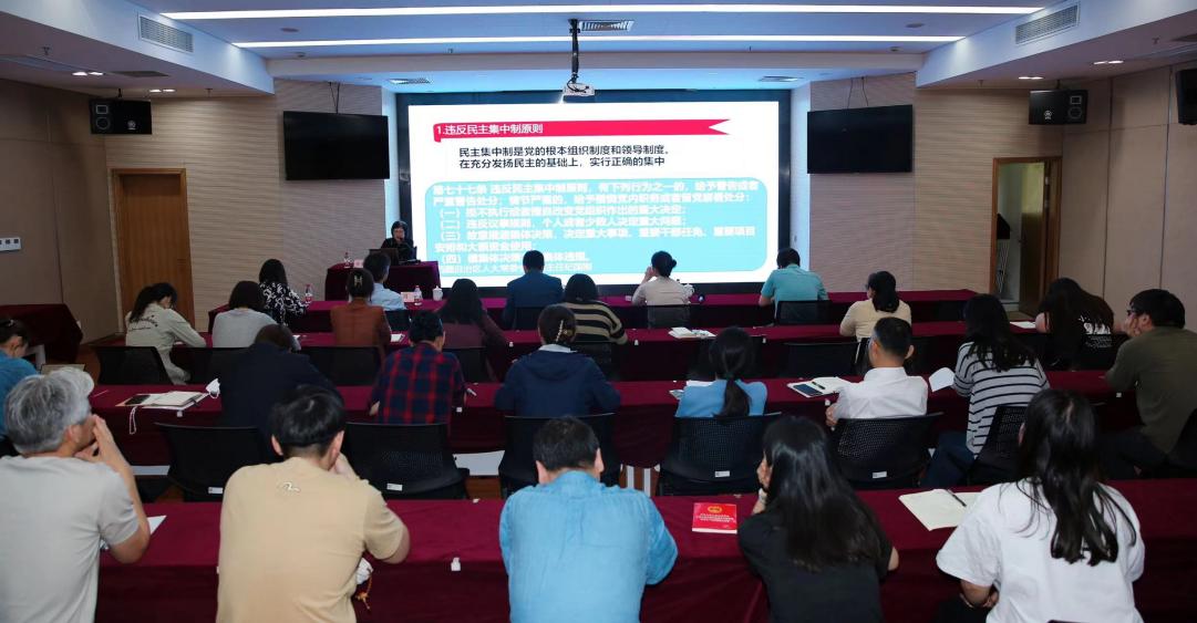 会上,蔡爱平详细解读了《关于在全党开展党纪学习教育的通知》的目标要求,并从《中国共产党党纪处分条例》(以下简称《条例》)修订背景和主要特点、主要内容和修订要点展开,通过全面分析《条例》的理论创新、制度创新和实践创新,阐述了执纪越来越严的强烈信号。同时,她通过详实的案例,将六项纪律要求及《条例》中涉及的具体条款相对应,逐一分析,将《条例》讲准、讲深、讲透,提醒所有党员要坚定理想信念,不断提升党性修养,提高政治定力、道德定力,保持对纪律的敬畏之心,提高纪律意识。