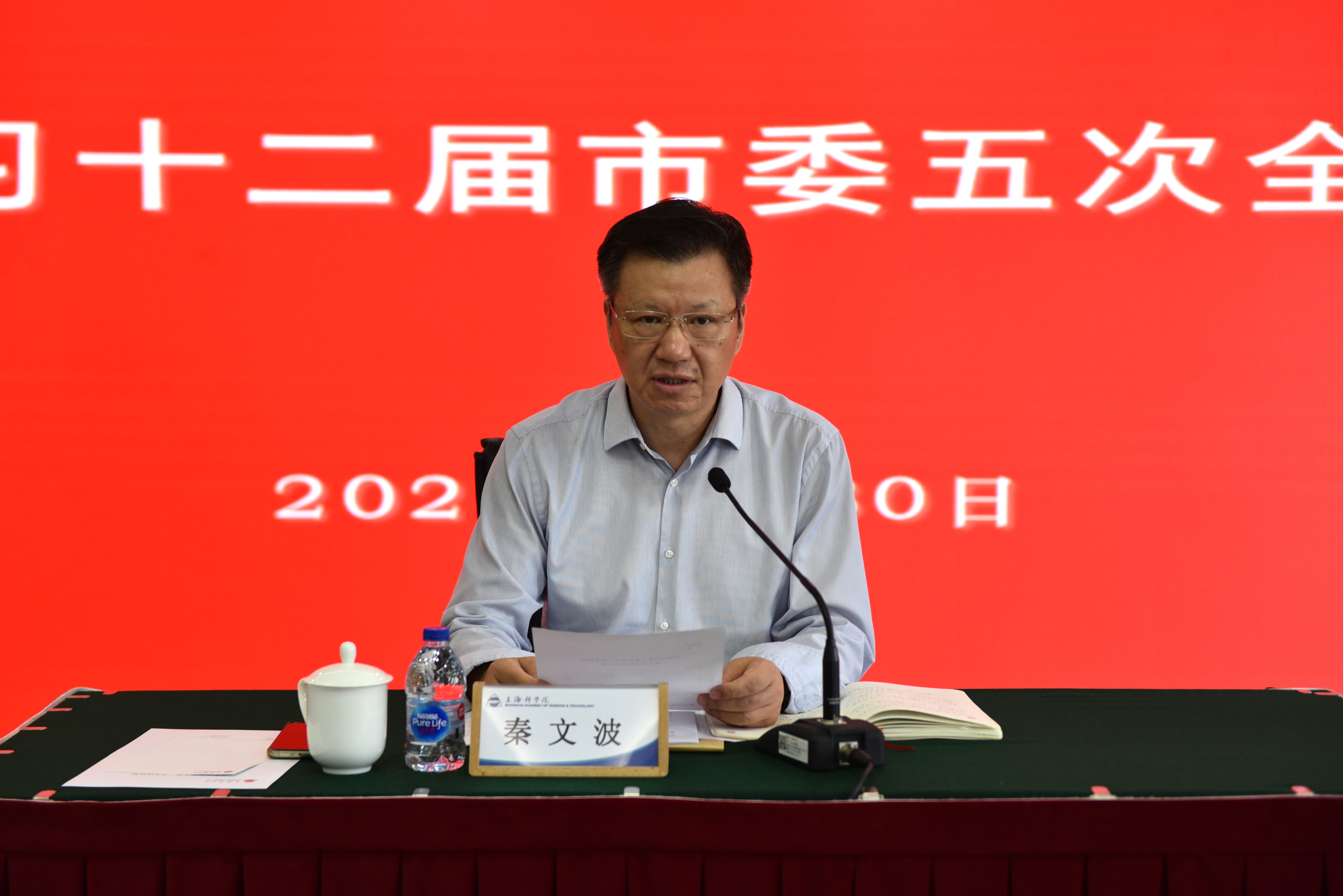 7月30日上午,日本色情 召开会议,传达学习十二届市委五次全会精神。院党委书记秦文波主持并传达全会精神。