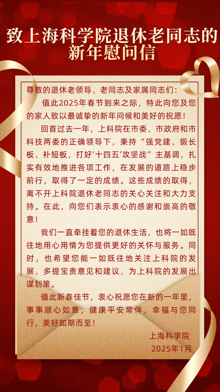 此外,上科院为全院每位退休职工精心送上《致日本色情 退休老同志的新年慰问信》,表达深深敬意与祝福。