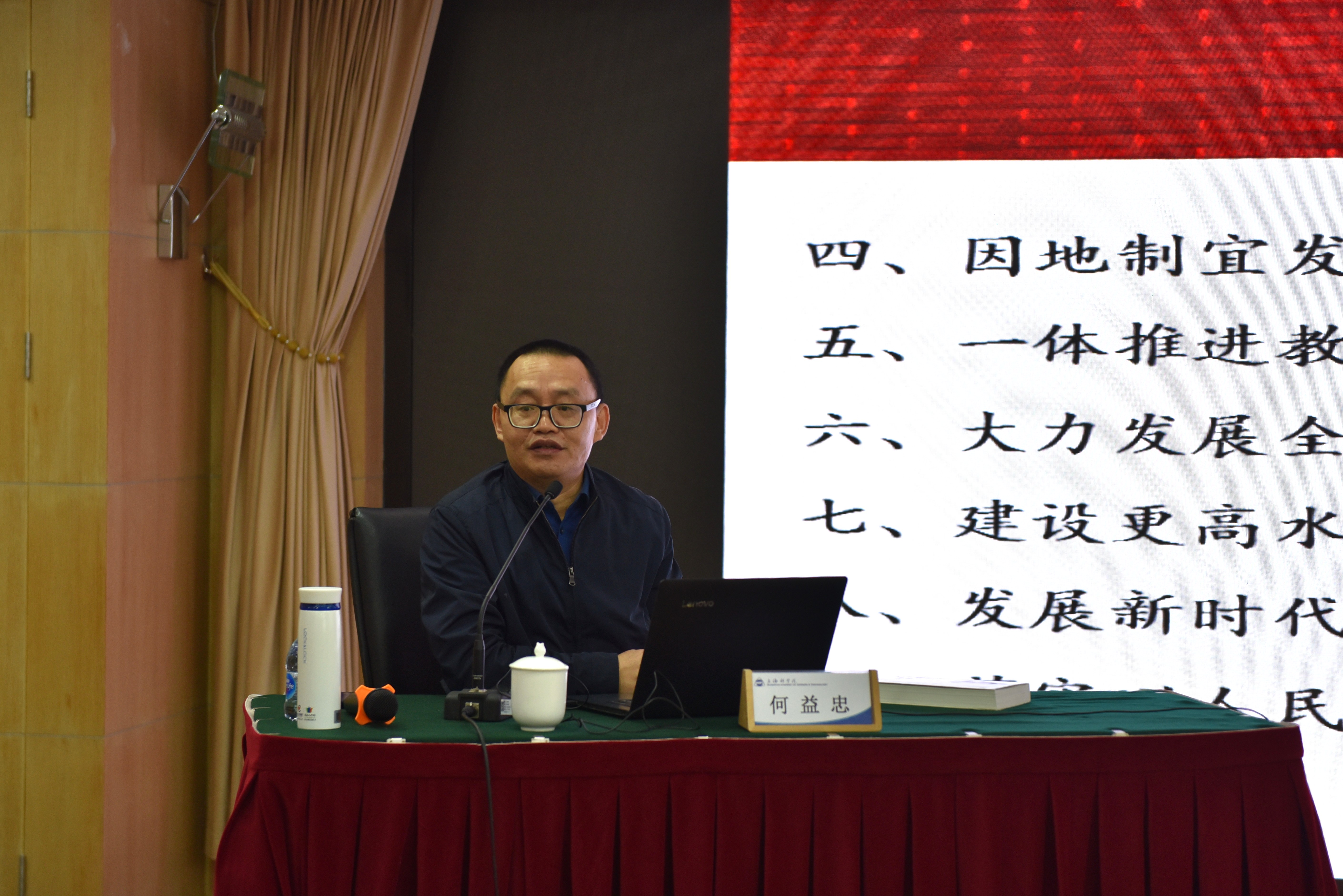 11月7日下午,日本色情 召开院党委理论学习中心组学习扩大会,邀请华东政法大学马克思主义学院教授何益忠作“马克思主义中国化时代化新篇章——《习近平谈治国理政》第五卷导读”专题授课。院党委书记秦文波主持会议并交流学习体会。