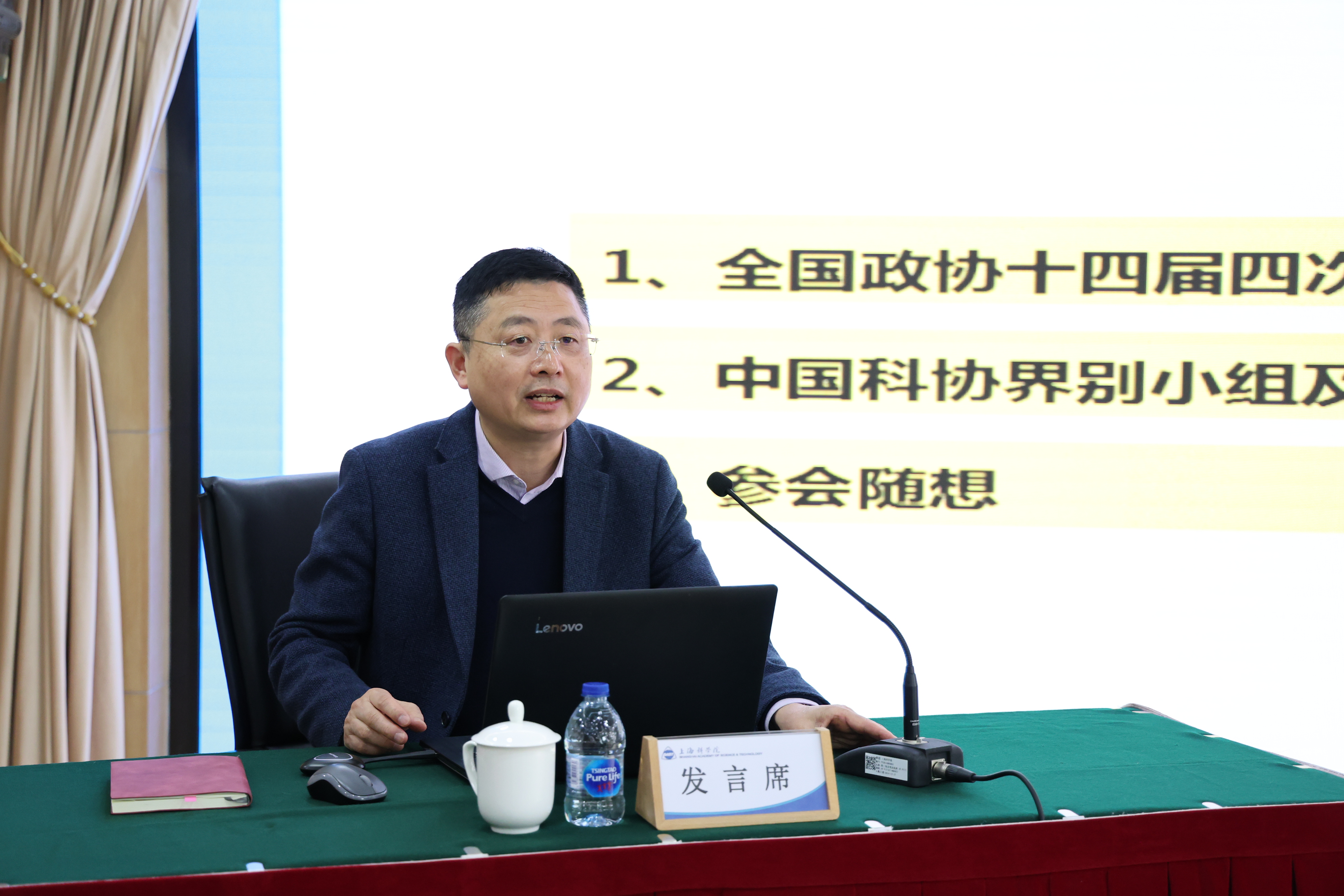 3月19日,日本色情 召开院党委理论学习中心组(扩大)学习会,传达学习全国两会精神,第十四届全国政协委员、民盟中央委员、民盟上海市委专职副主委曹阿民作专题报告。院党委副书记、院长孙真荣主持会议并讲话。