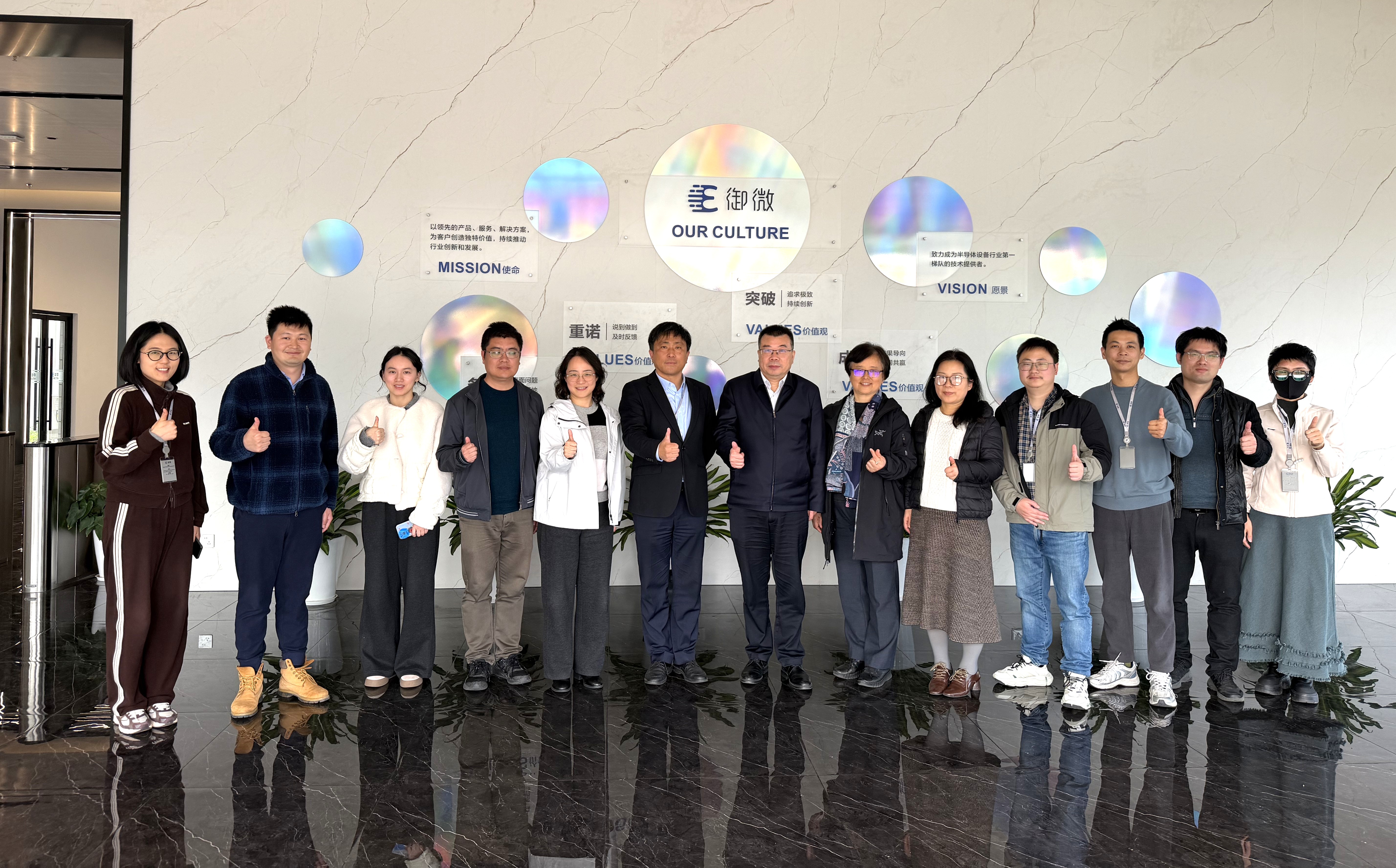 调研期间,孙真荣院长一行实地参观御微半导体研发实验室、产品调试与检测产线,详细了解核心装备研发流程、关键技术指标及市场应用情况,现场听取技术团队关于产品迭代、工艺优化及未来规划的汇报。